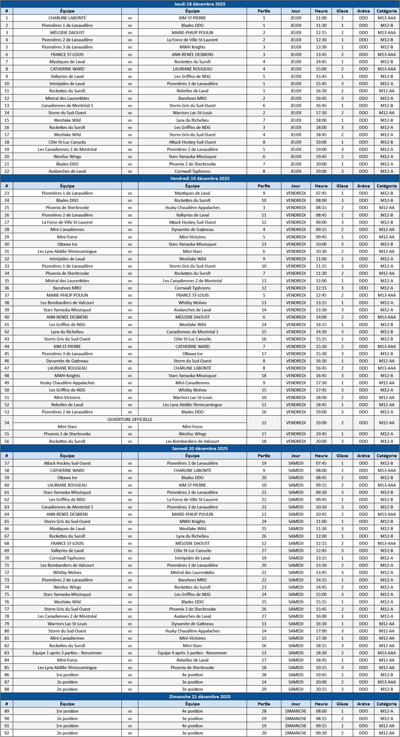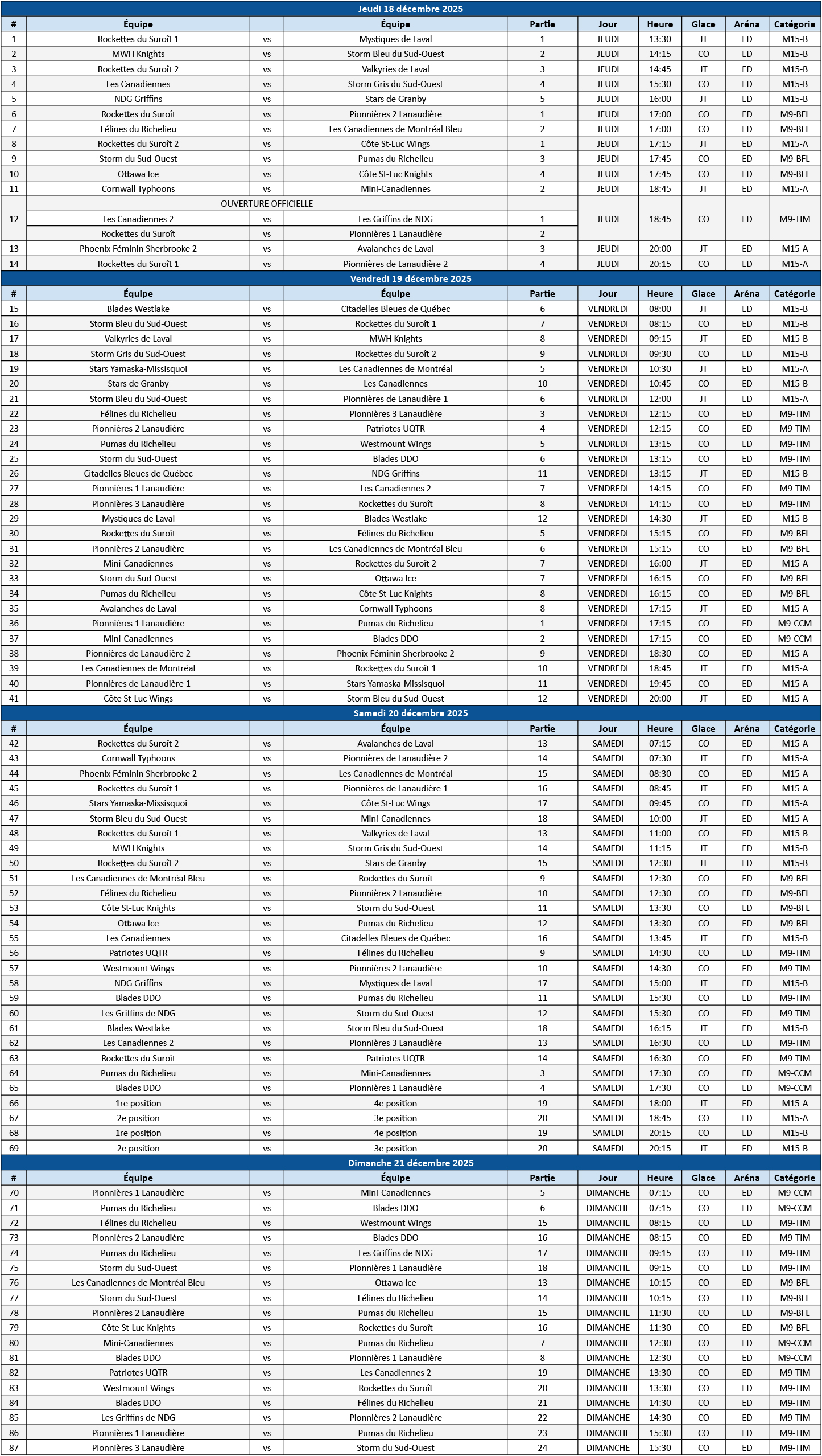 U12 & 13 game schedule